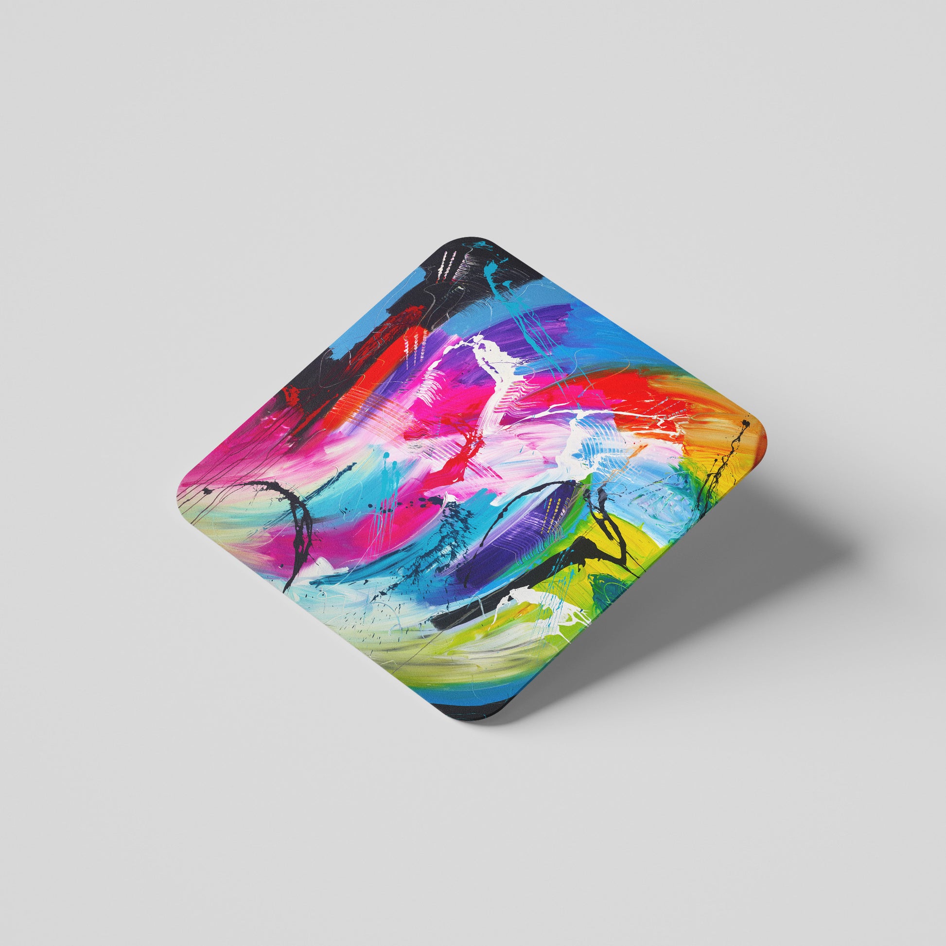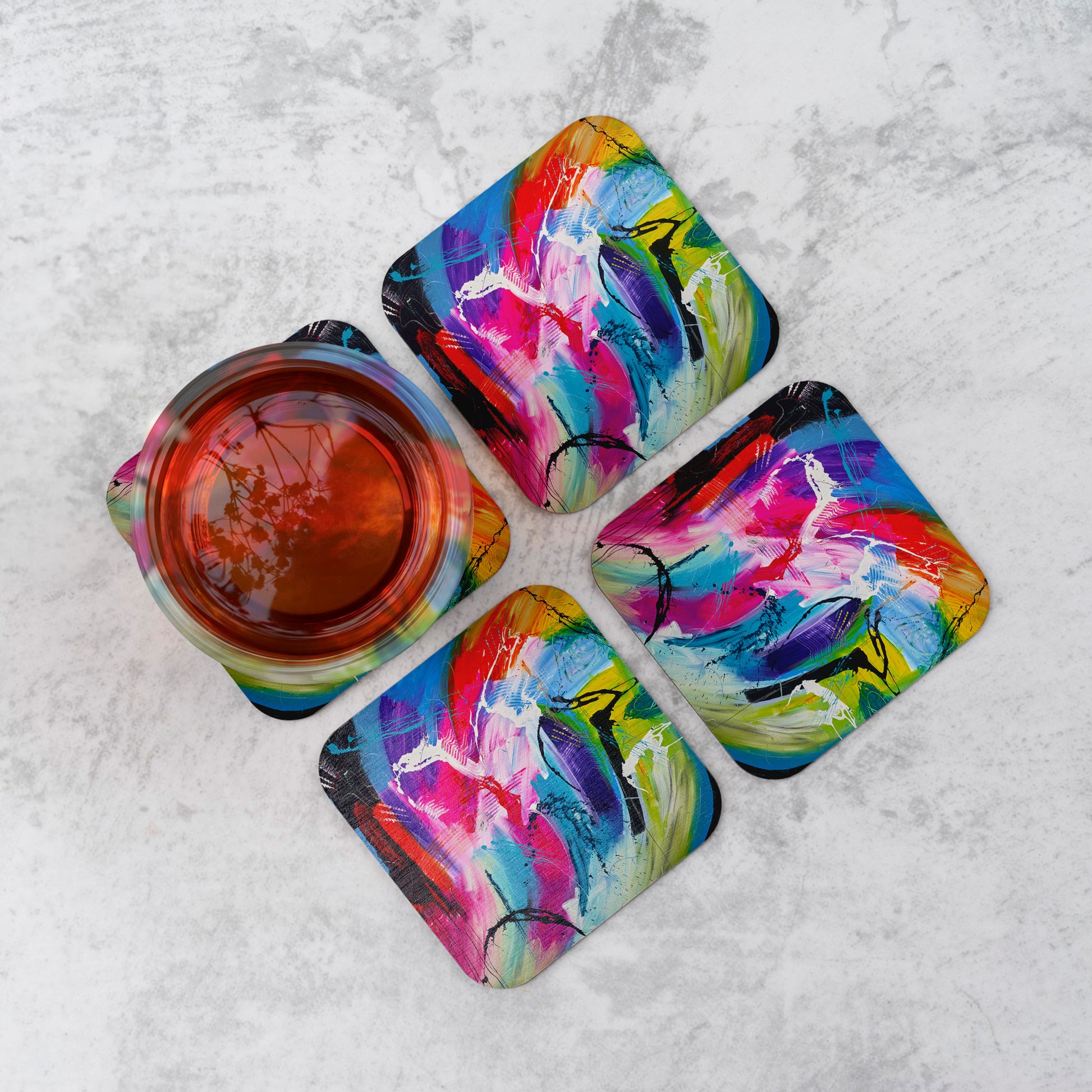 Give your favourite surfaces a lift with stunning abstract coasters. The perfect way to jazz up coffee tables, dining tables or even mantle pieces. These showstopping coasters have a hard wooden base that will prevent your surfaces from getting scratched, while the glossy artwork on the face shines in all its glory. Set of 4.